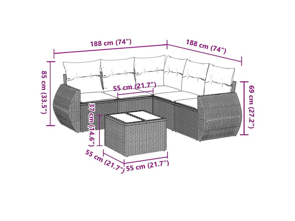 Tato zahradní sedací souprava je dokonalým doplňkem vaší zahrady, terasy nebo dvorku a poskytne vám pohodlné a příjemné místo, kde si můžete povídat s rodinou a přáteli nebo jen tak odpočívat a užívat si pobyt venku.