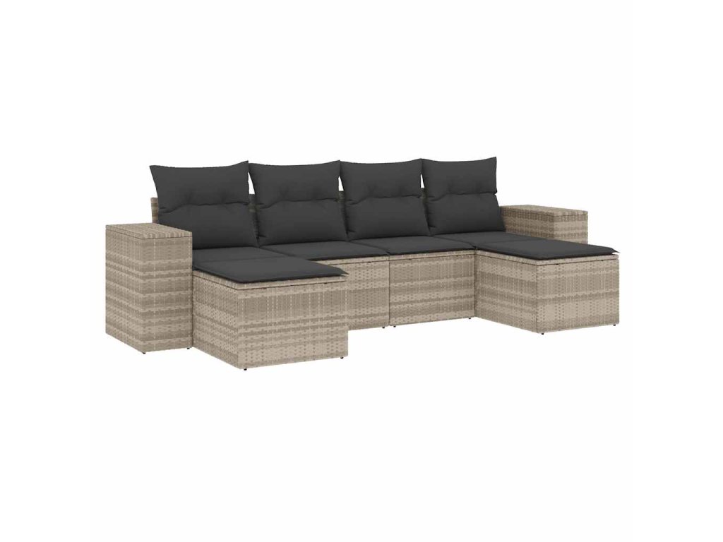 6dílná zahradní sedací souprava a podušky světle šedá polyratan 3222921