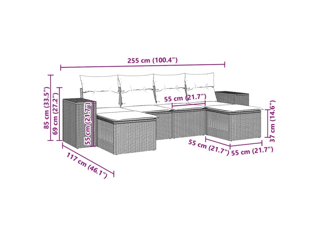Tato zahradní sedací souprava je dokonalým doplňkem vaší zahrady, terasy nebo dvorku a poskytne vám pohodlné a příjemné místo, kde si můžete povídat s rodinou a přáteli nebo jen tak odpočívat a užívat si pobyt venku.