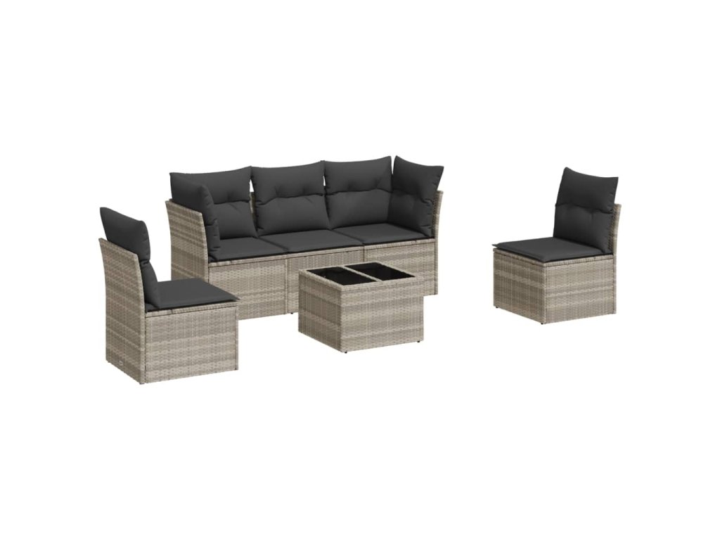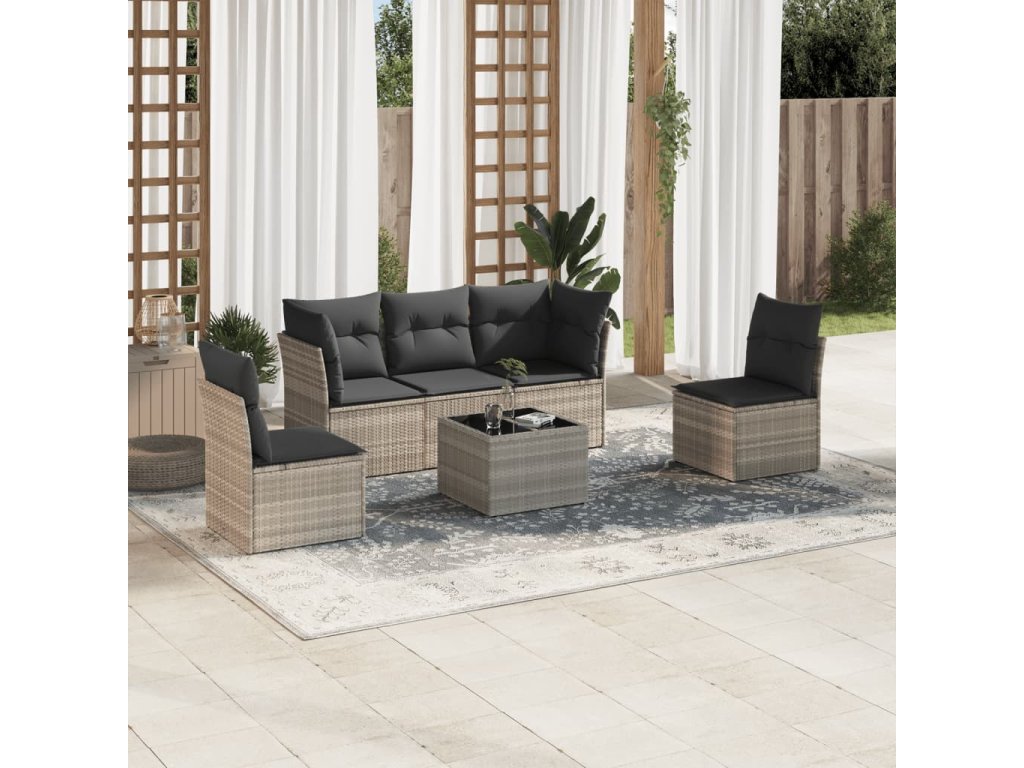 6dílná zahradní sedací souprava a podušky světle šedá polyratan 3249201