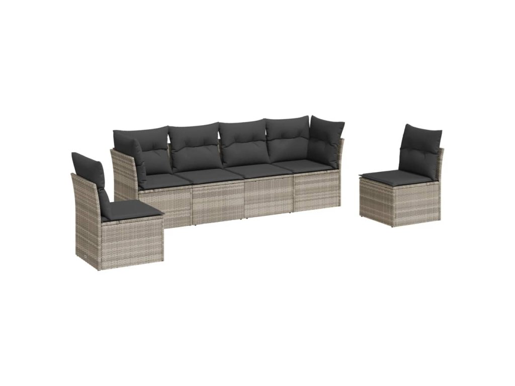 6dílná zahradní sedací souprava a podušky světle šedá polyratan 3249211