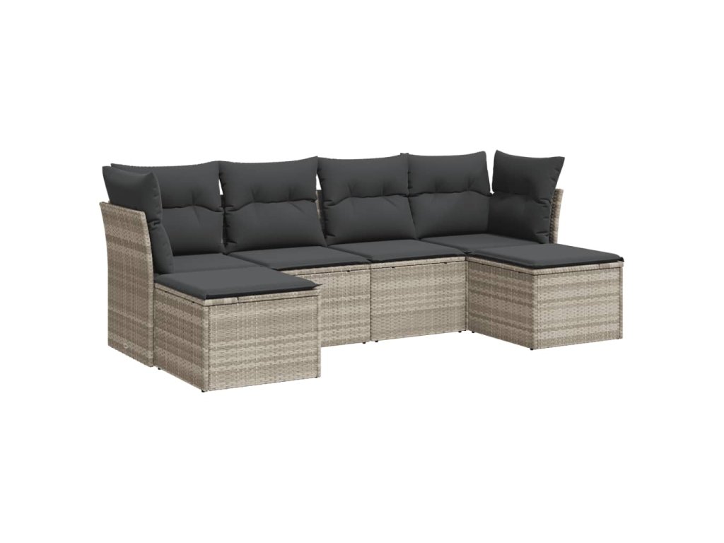 6dílná zahradní sedací souprava a podušky světle šedá polyratan 3249851