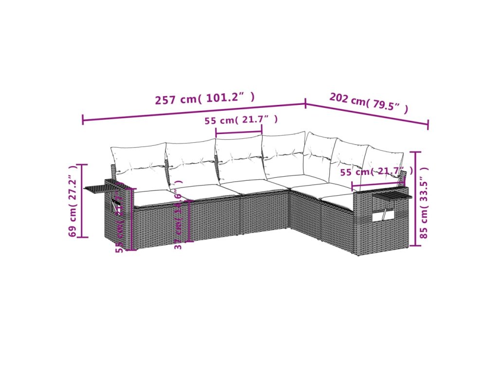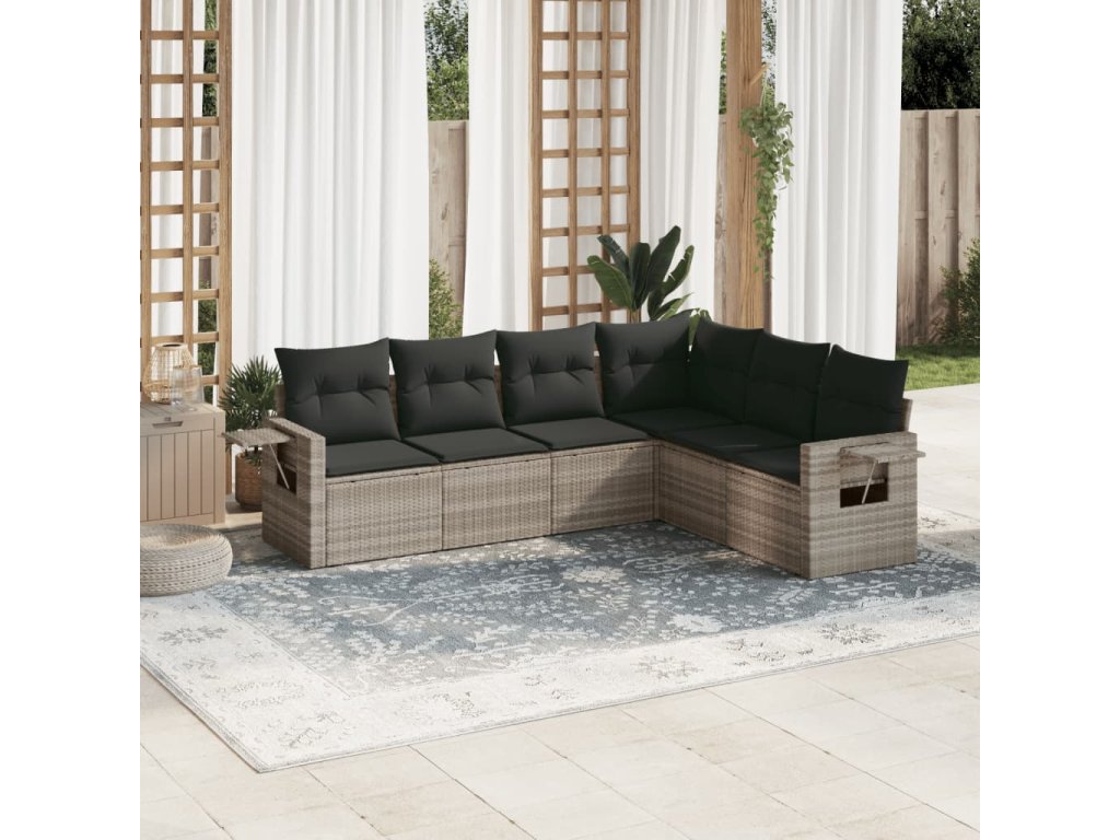 6dílná zahradní sedací souprava a podušky světle šedá polyratan 3252549