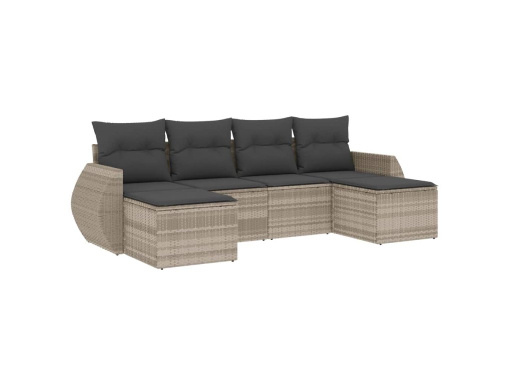 6dílná zahradní sedací souprava a podušky světle šedá polyratan 3254059