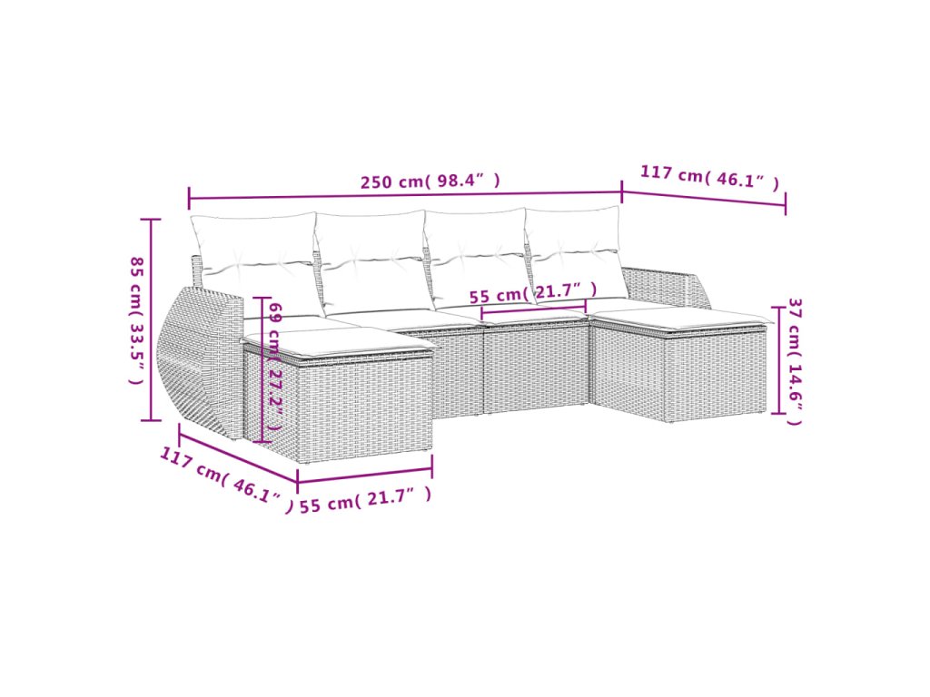 Tato zahradní sedací souprava je dokonalým doplňkem vaší zahrady, terasy nebo dvorku a poskytne vám pohodlné a příjemné místo, kde si můžete povídat s rodinou a přáteli nebo jen tak odpočívat a užívat si pobyt venku.