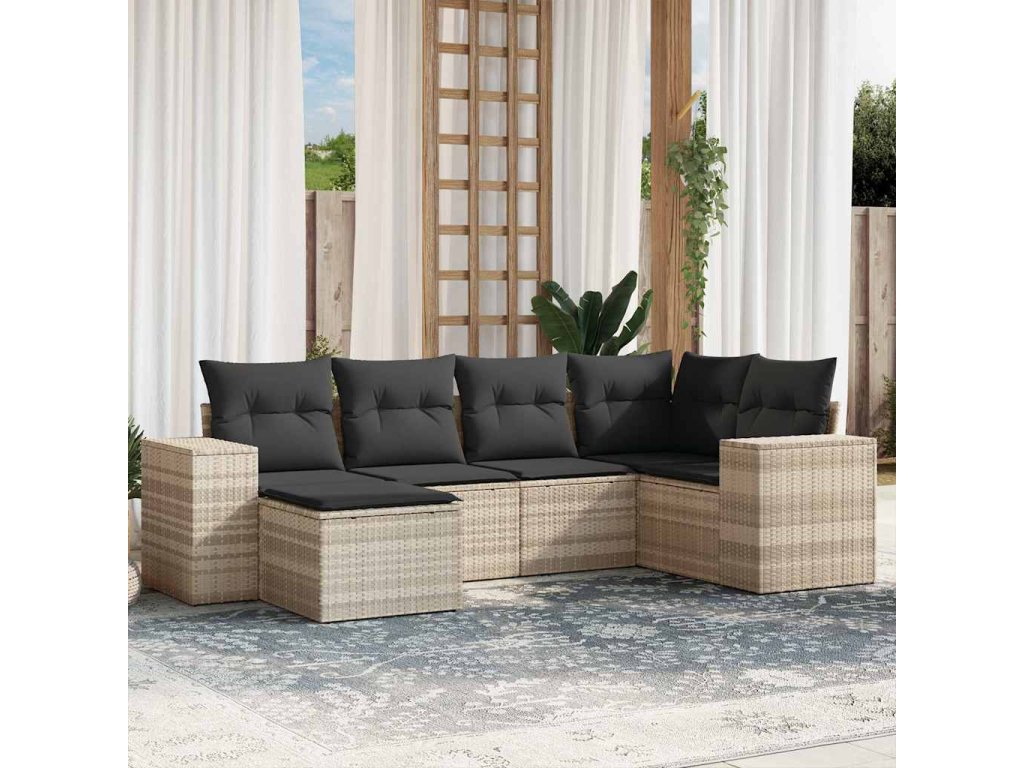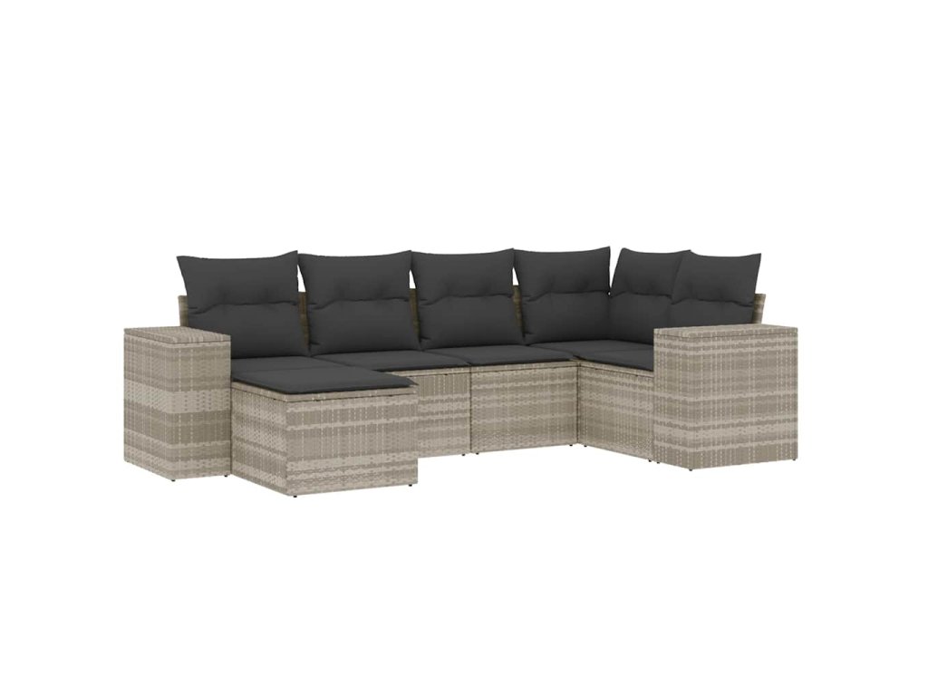 6dílná zahradní sedací souprava a podušky světle šedá polyratan 3255199