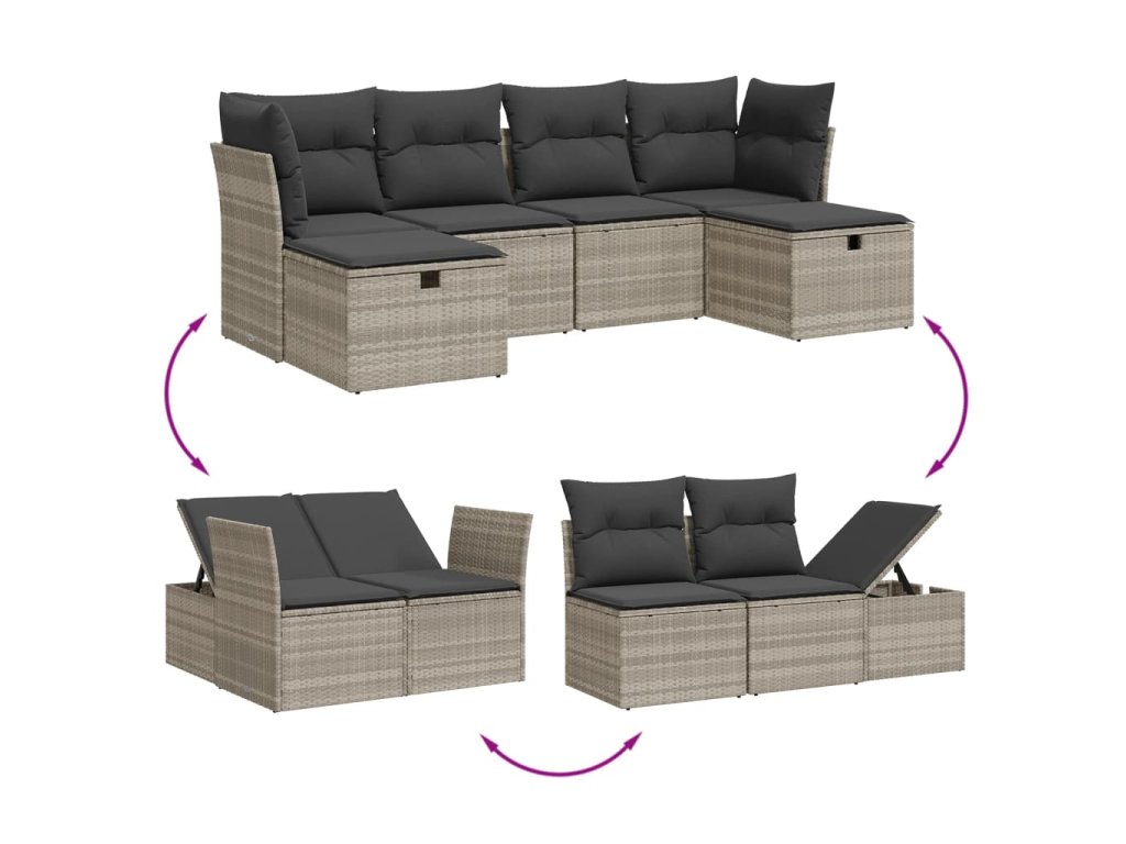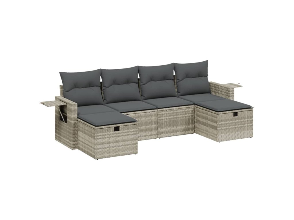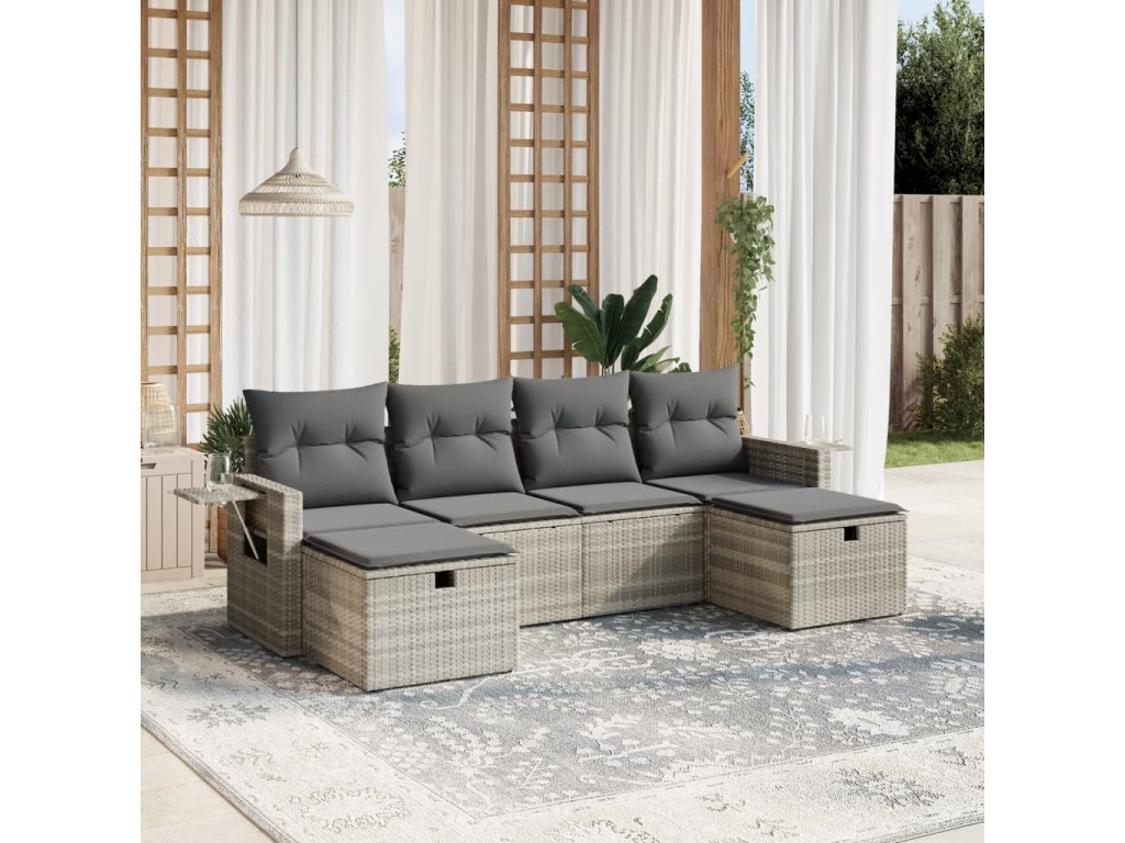 6dílná zahradní sedací souprava a podušky světle šedá polyratan 3263858