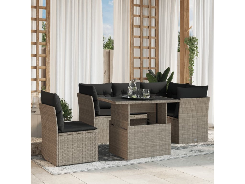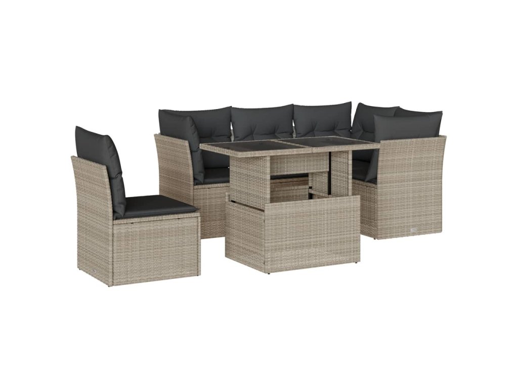 6dílná zahradní sedací souprava a podušky světle šedá polyratan 3266592
