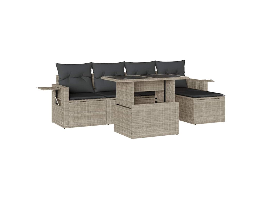 6dílná zahradní sedací souprava a podušky světle šedá polyratan 3267872