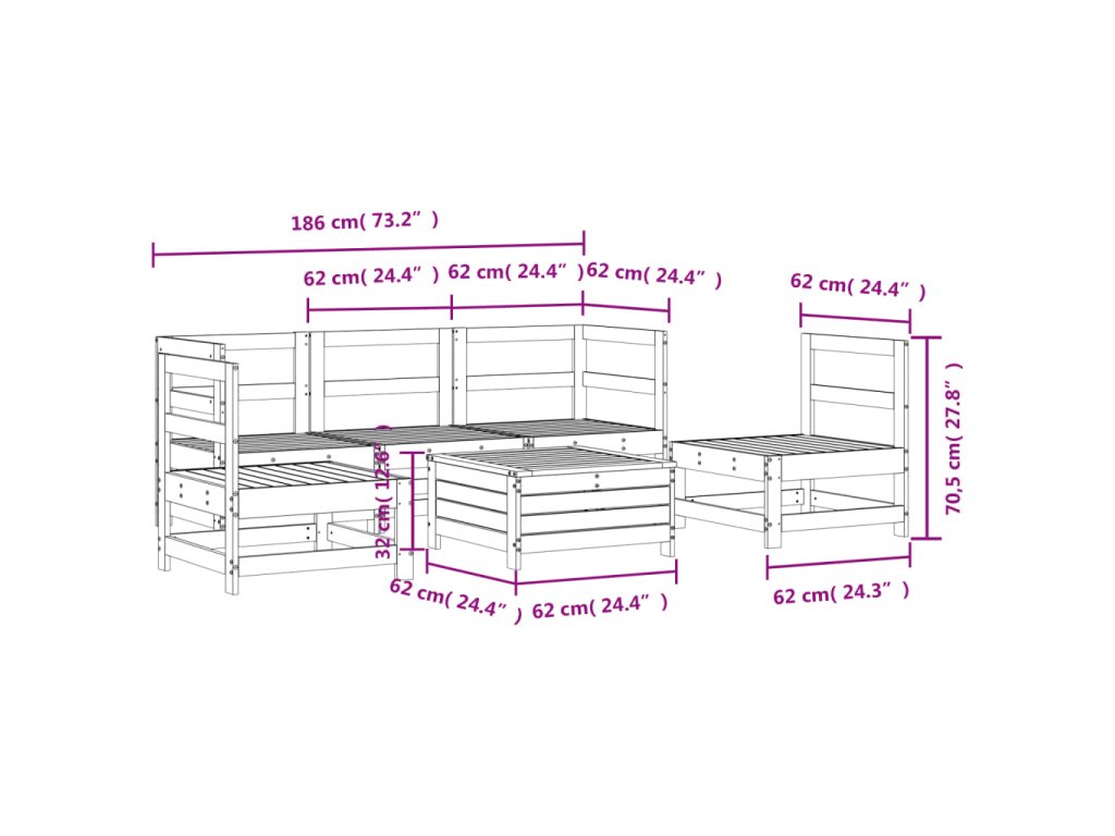 6dílná zahradní sedací souprava bílá masivní borovice 3250713