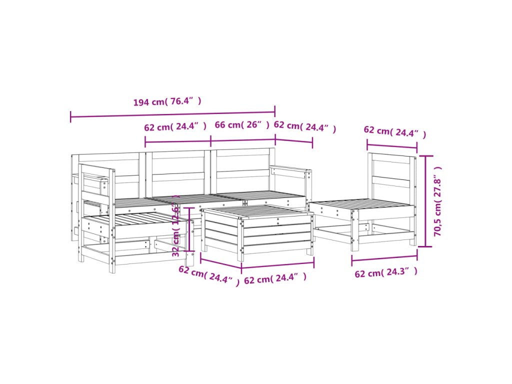 6dílná zahradní sedací souprava bílá masivní borovice 3250749
