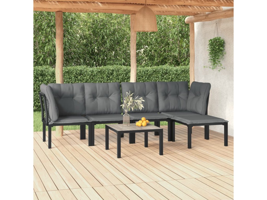 6dílná zahradní sedací souprava černá a šedá polyratan 3187750