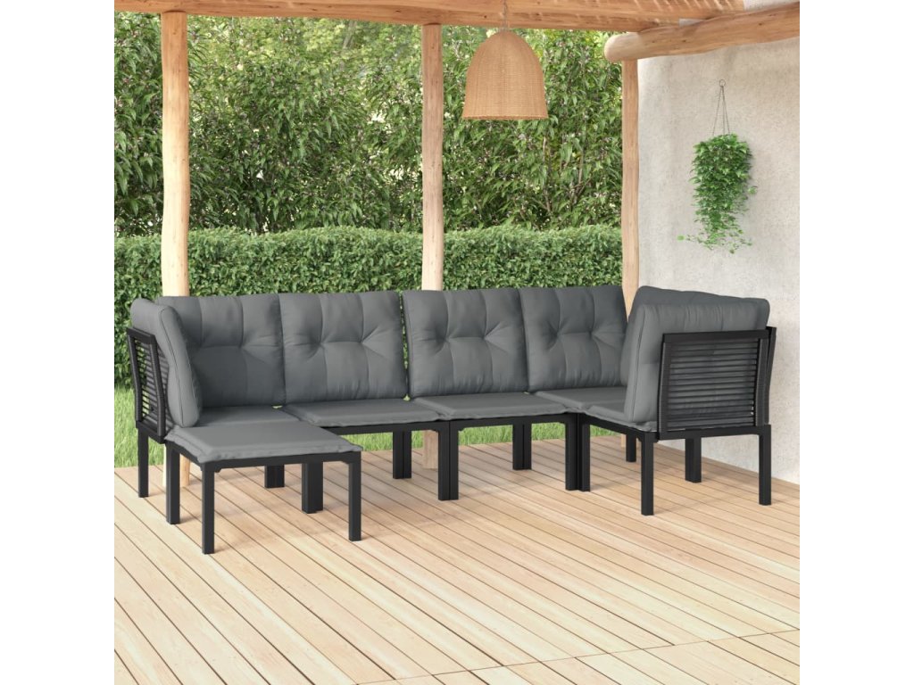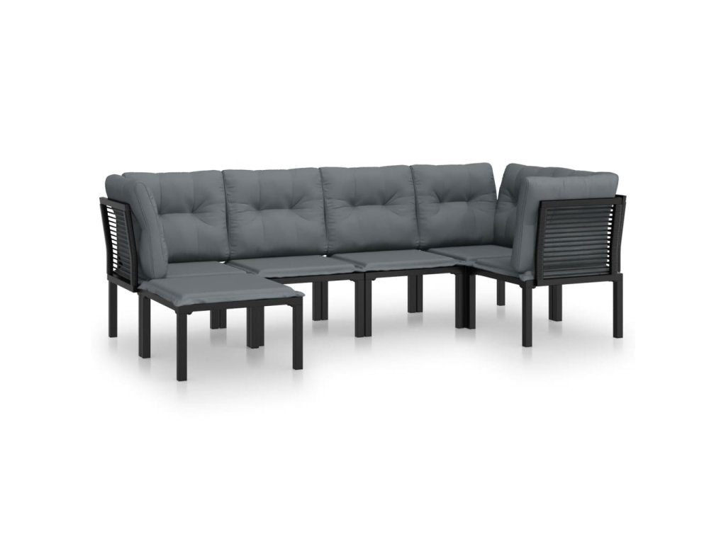 6dílná zahradní sedací souprava černá a šedá polyratan 3187758
