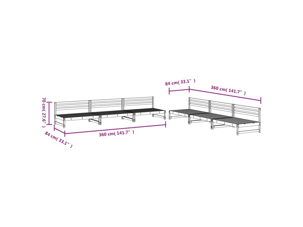 - Rozměry středové pohovky: 120 x 84 x 70 cm (D x Š x V)