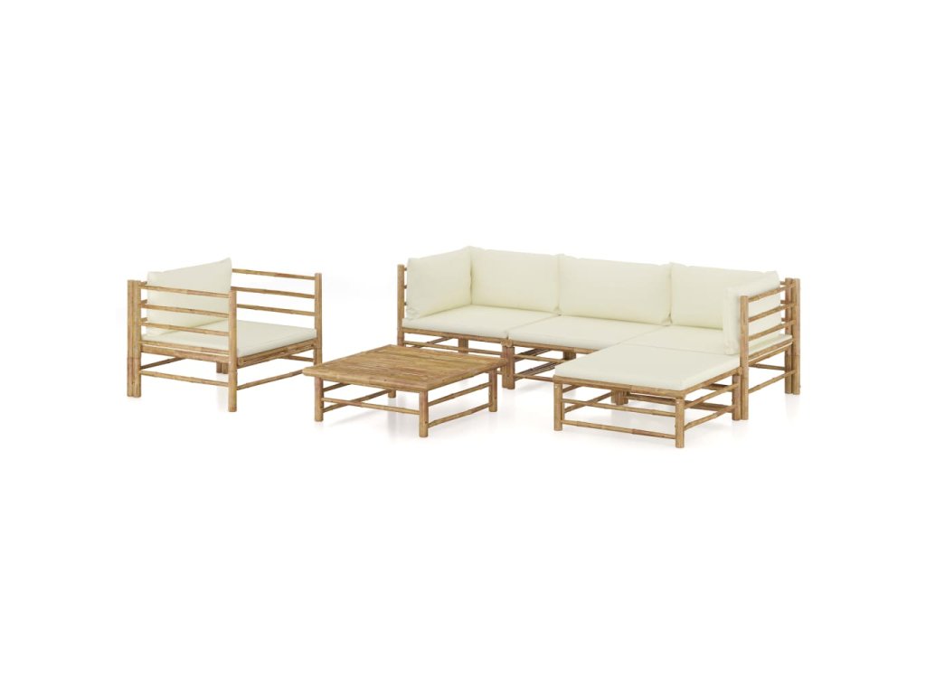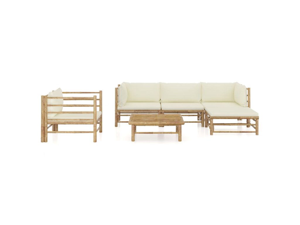 6dílná zahradní sedací souprava + krémově bílé podušky bambus 3058195