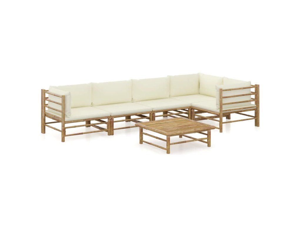 6dílná zahradní sedací souprava + krémově bílé podušky bambus 3058239