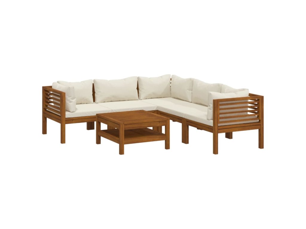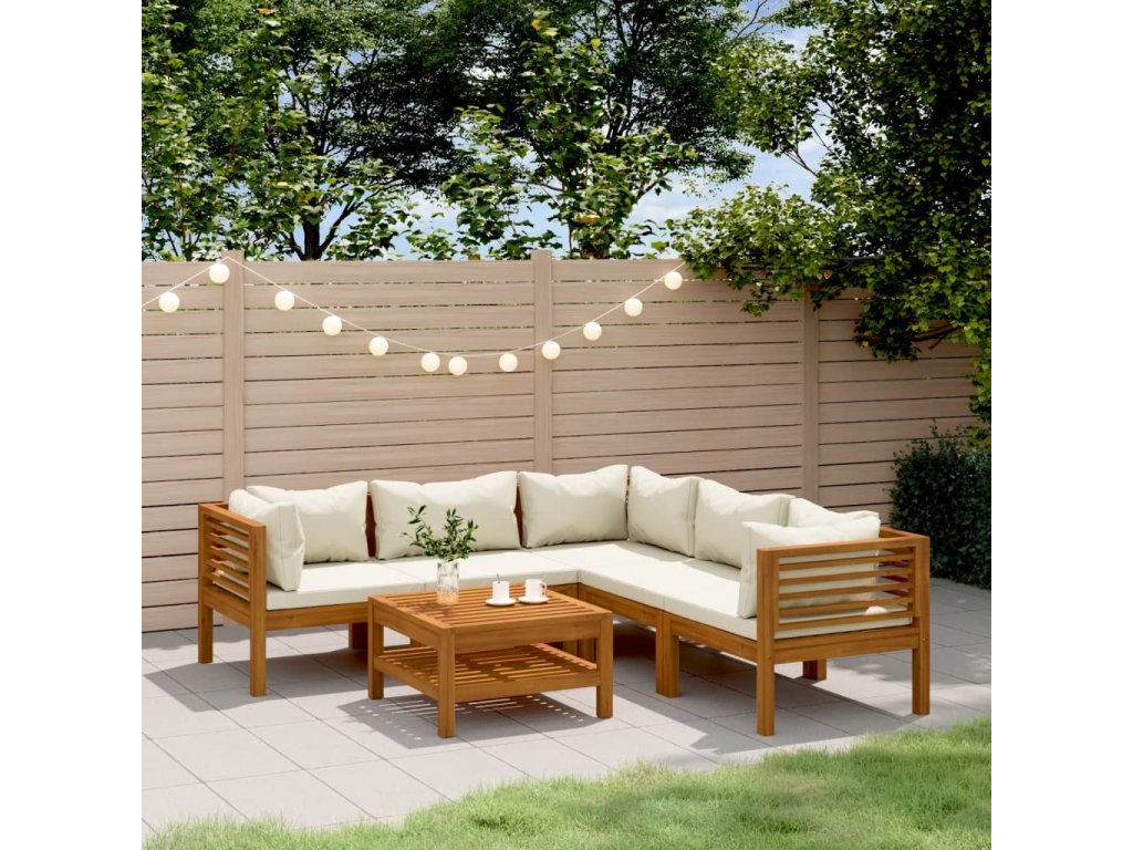 6dílná zahradní sedací souprava krémové podušky masivní akácie 3086937