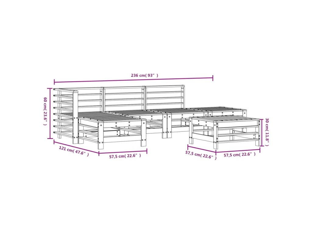 - Rozměry středové pohovky: 57,5 x 63,5 x 60 cm (D x Š x V)