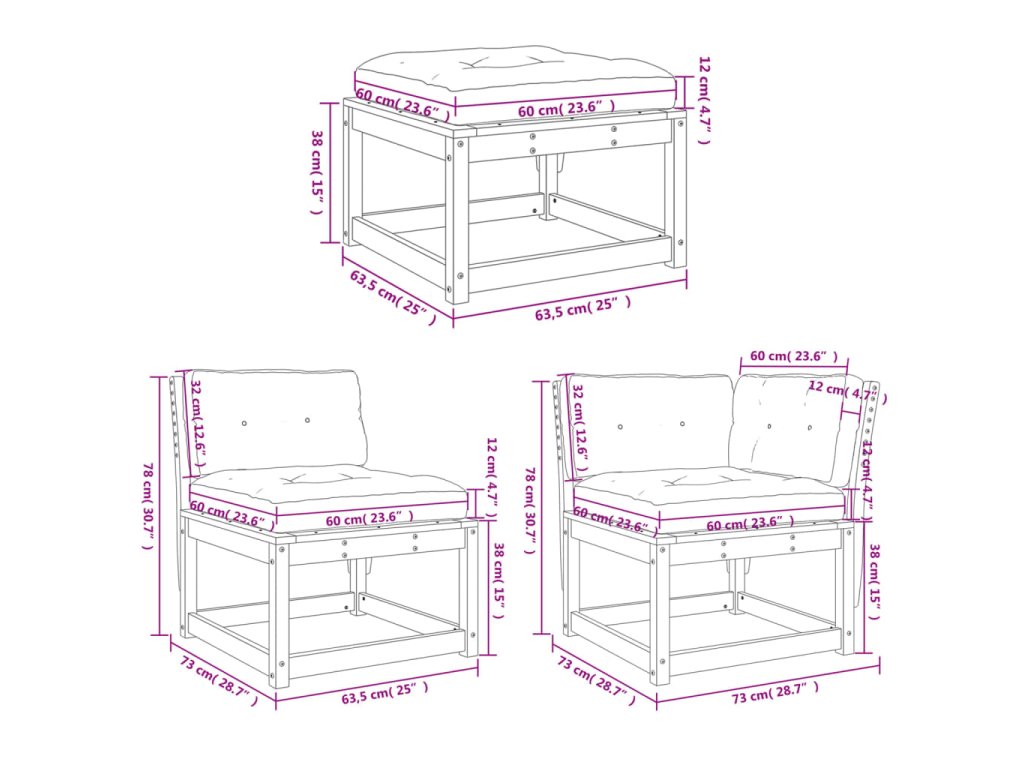 6dílná zahradní sedací souprava podušky voskově hnědá borovice 3217037