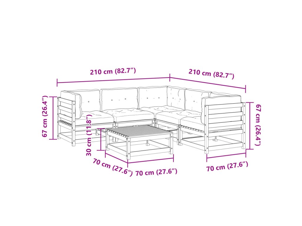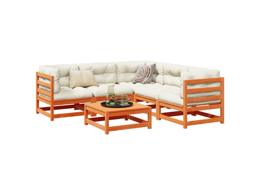 6dílná zahradní sedací souprava podušky voskově hnědá borovice 3299446