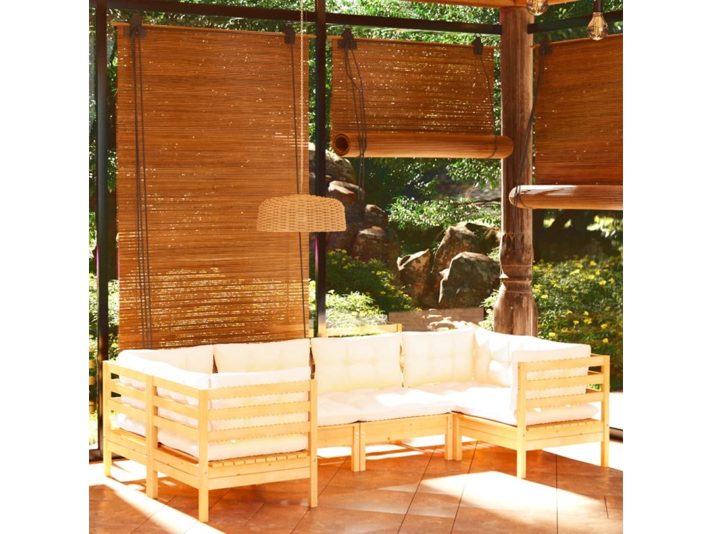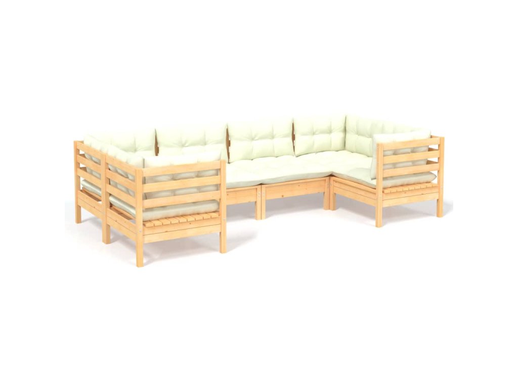 6dílná zahradní sedací souprava s krémovými poduškami borovice 3097295