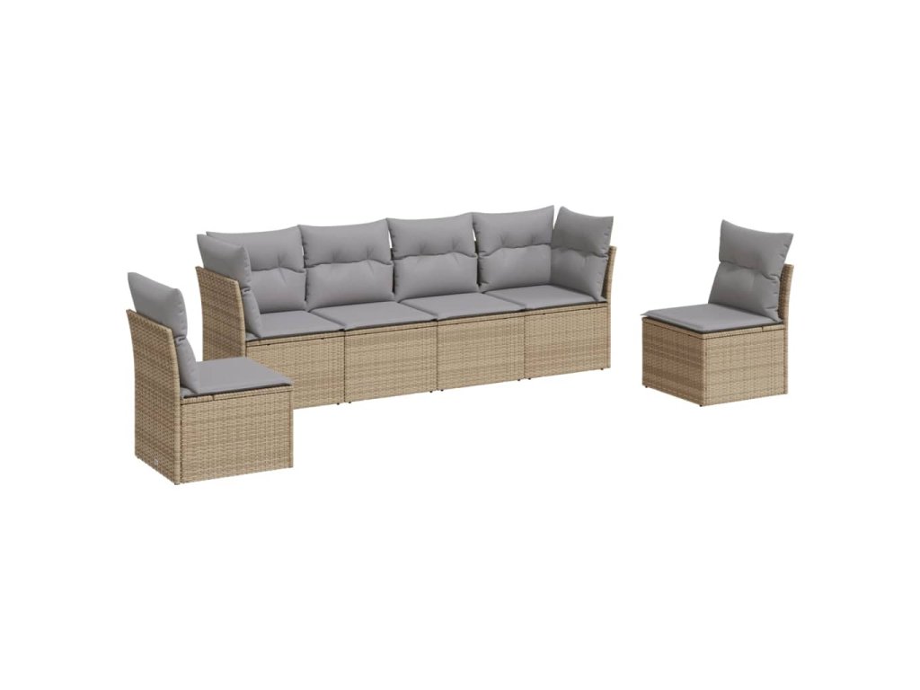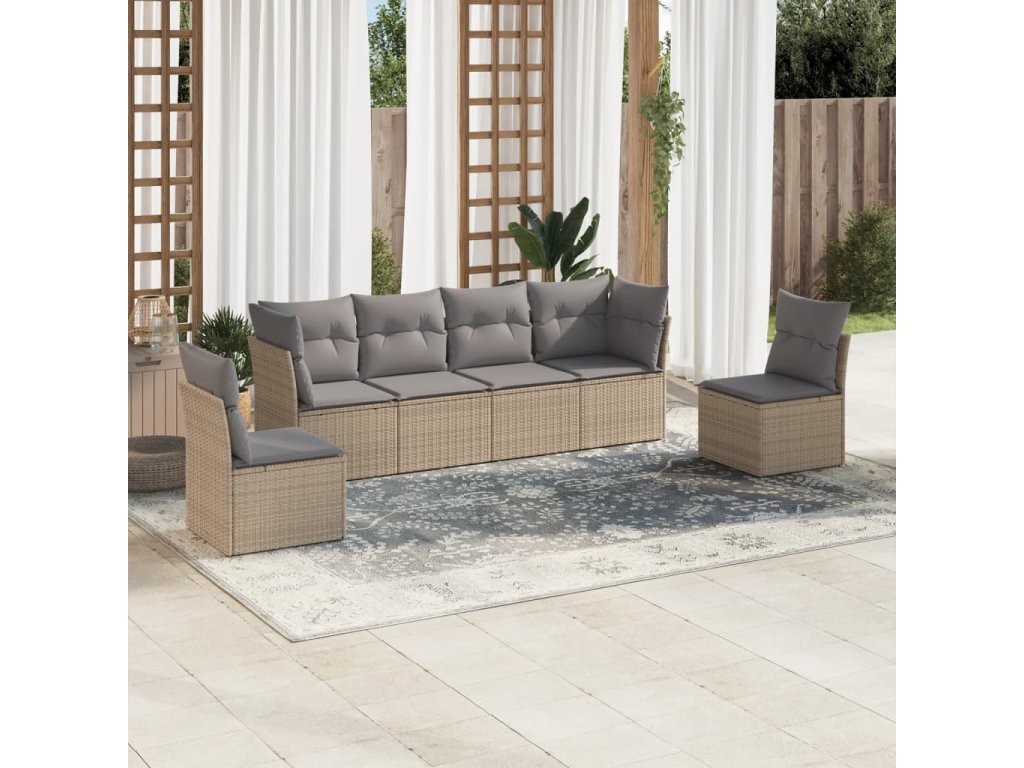 6dílná zahradní sedací souprava s poduškami béžová polyratan 3217369