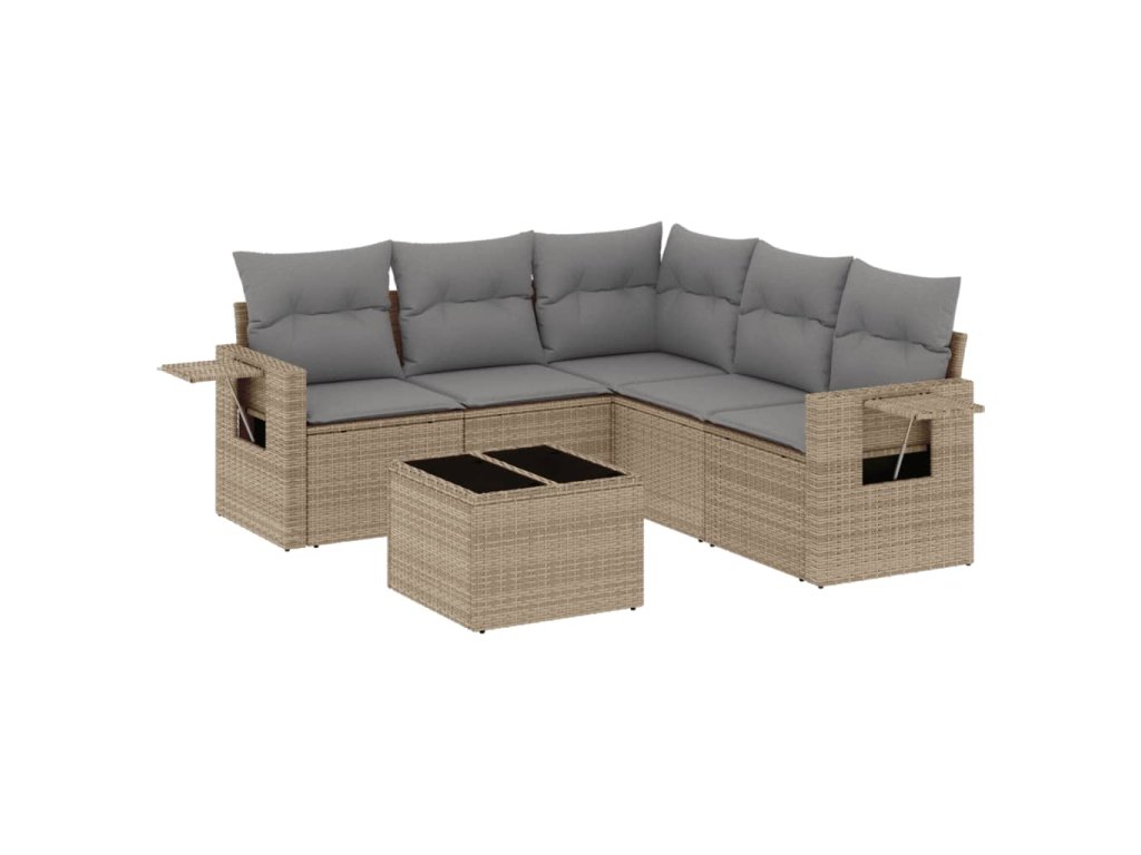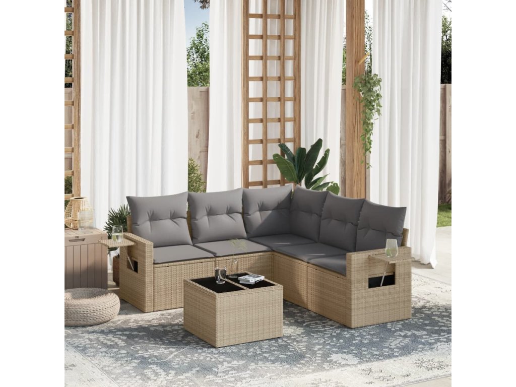 6dílná zahradní sedací souprava s poduškami béžová polyratan 3220158