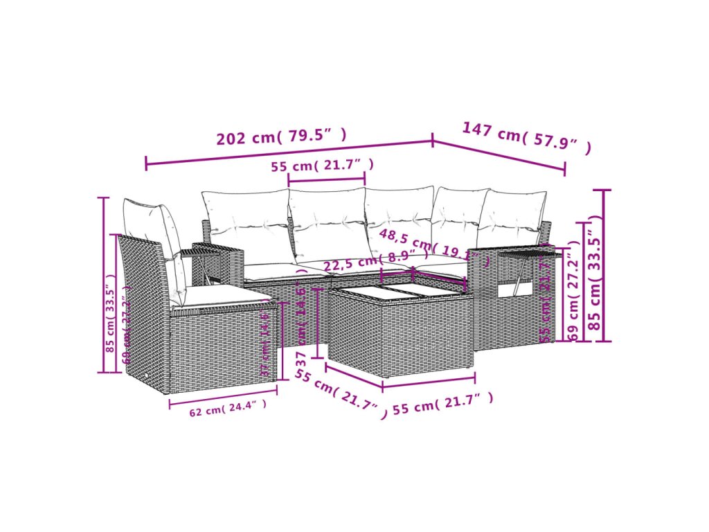Tato zahradní sedací souprava je dokonalým doplňkem vaší zahrady, terasy nebo dvorku a poskytne vám pohodlné a příjemné místo, kde si můžete povídat s rodinou a přáteli nebo jen tak odpočívat a užívat si pobyt venku.