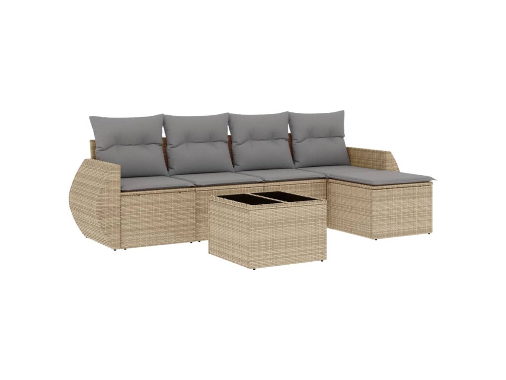 6dílná zahradní sedací souprava s poduškami béžová polyratan 3221298