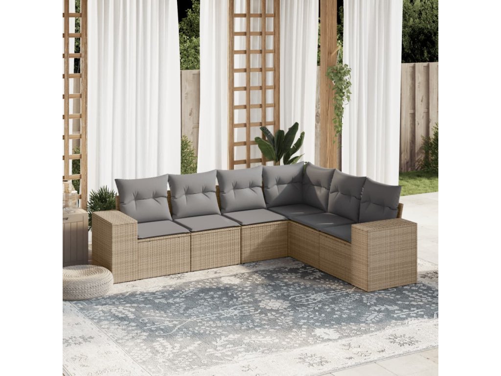 6dílná zahradní sedací souprava s poduškami béžová polyratan 3222608