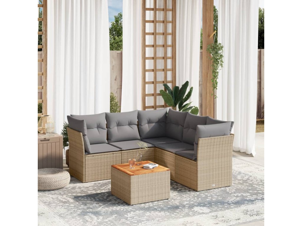 6dílná zahradní sedací souprava s poduškami béžová polyratan 3223637
