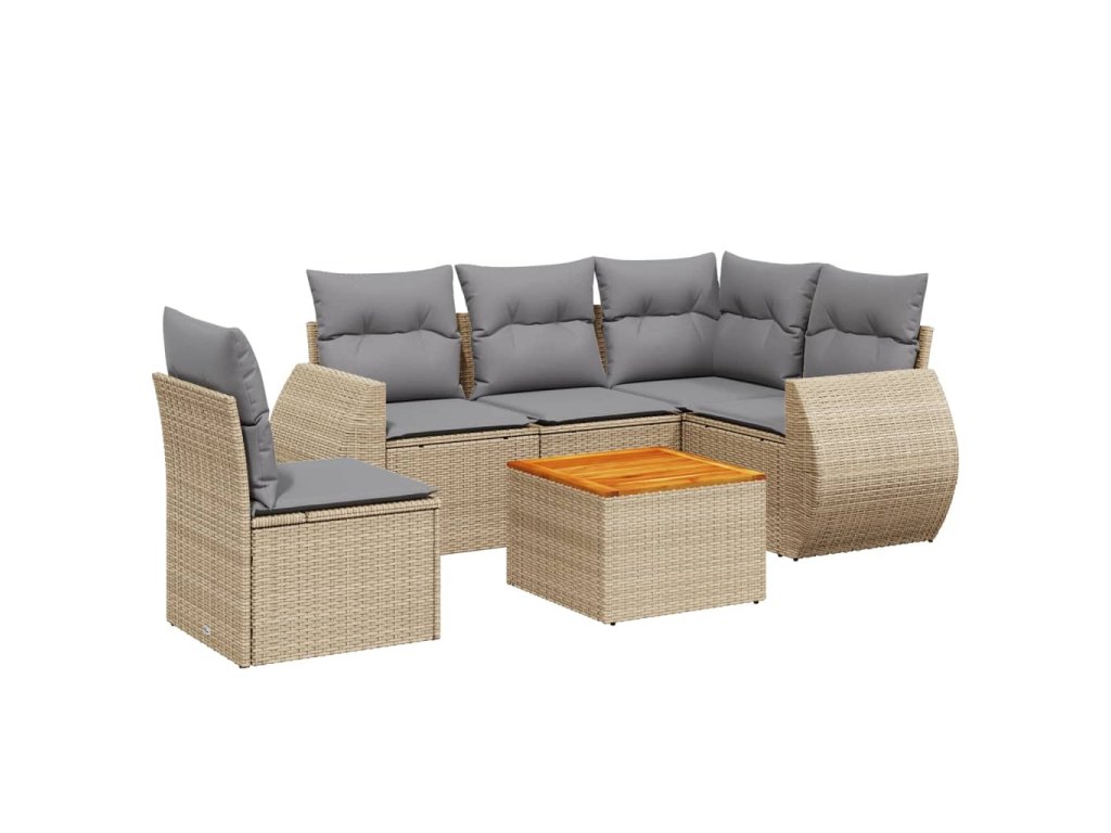 6dílná zahradní sedací souprava s poduškami béžová polyratan 3225009