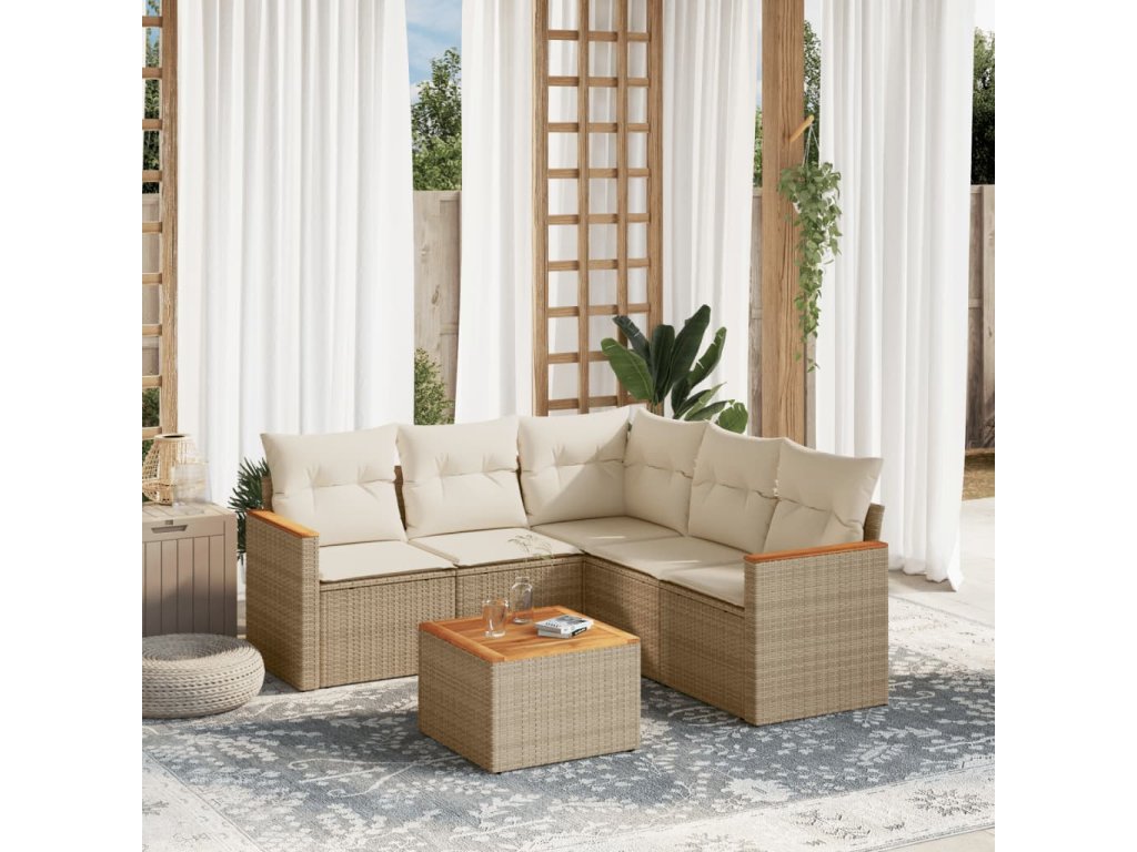 6dílná zahradní sedací souprava s poduškami béžová polyratan 3225967