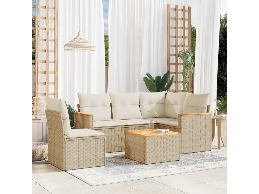 6dílná zahradní sedací souprava s poduškami béžová polyratan 3225981