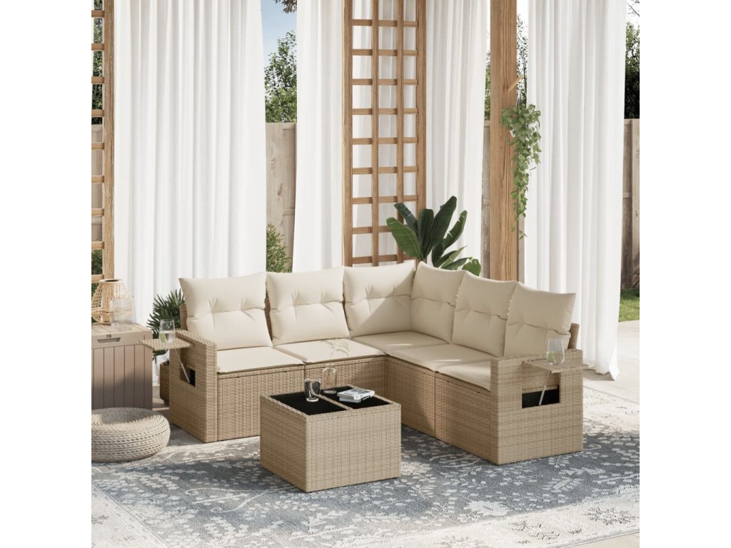 6dílná zahradní sedací souprava s poduškami béžová polyratan 3252495