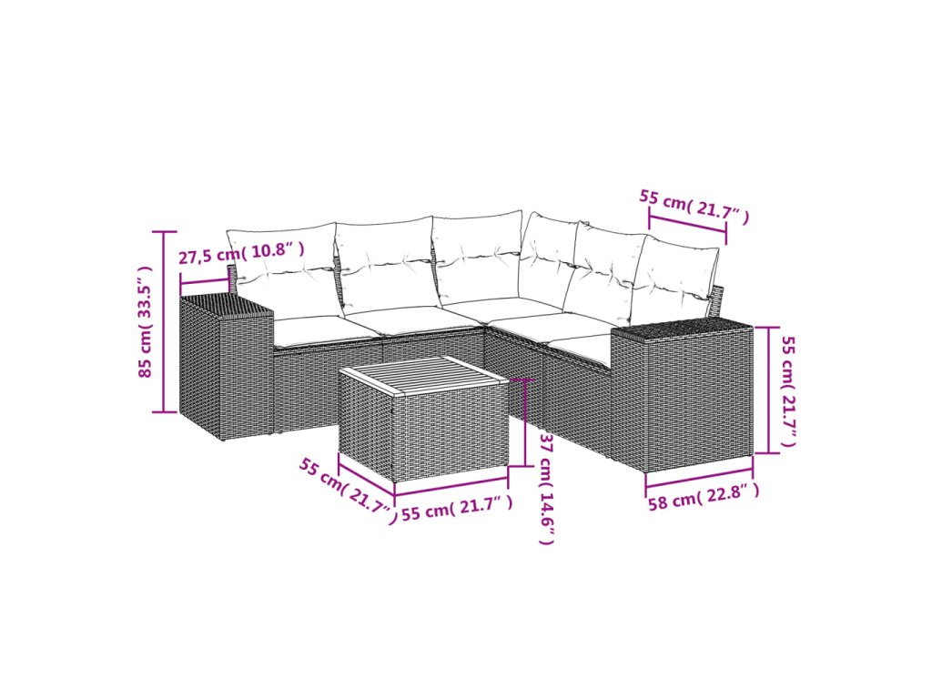 Tato zahradní sedací souprava je dokonalým doplňkem vaší zahrady, terasy nebo dvorku a poskytne vám pohodlné a příjemné místo, kde si můžete povídat s rodinou a přáteli nebo jen tak odpočívat a užívat si pobyt venku.
