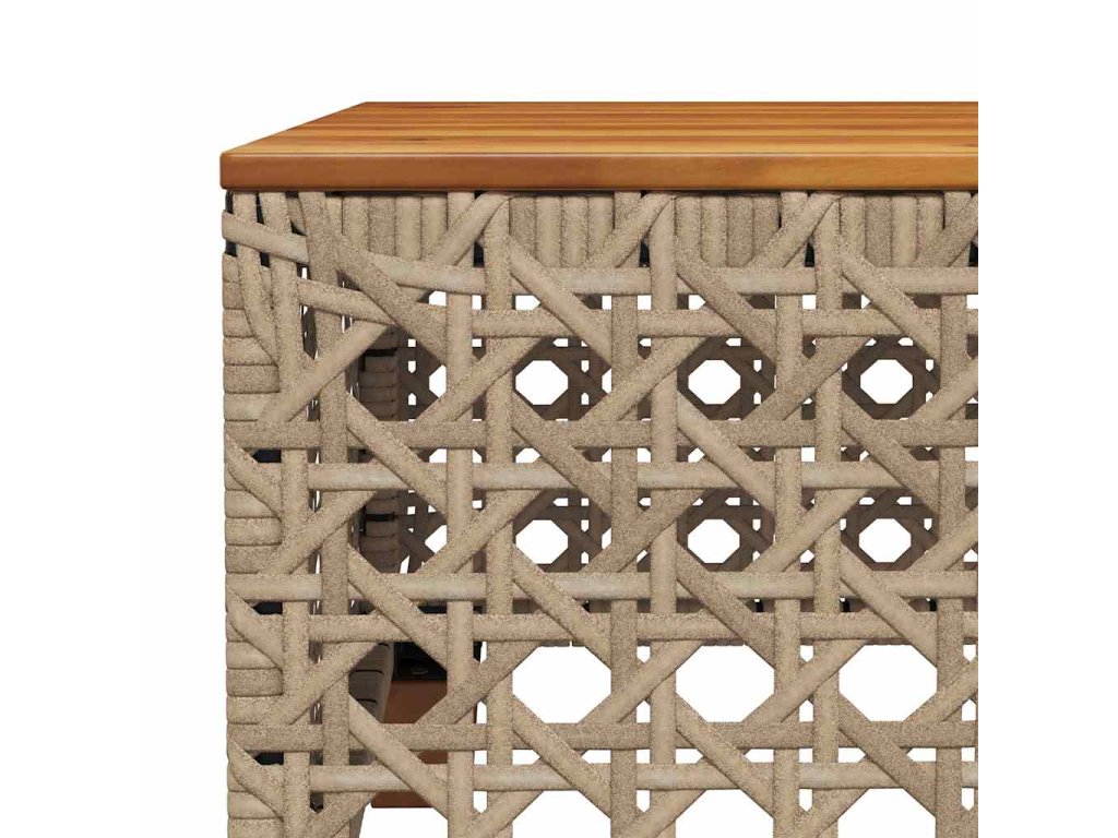 - Materiál: PE ratan, práškově lakovaná ocel, masivní akáciové dřevo s přírodní olejovou povrchovou úpravou