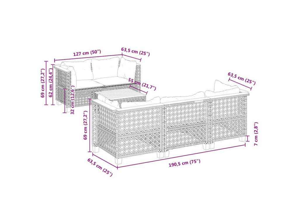 Tato zahradní sedací souprava je dokonalým doplňkem vaší zahrady, terasy nebo dvorku a poskytne vám pohodlné a příjemné místo, kde si můžete povídat s rodinou a přáteli nebo jen tak odpočívat a užívat si pobyt venku.