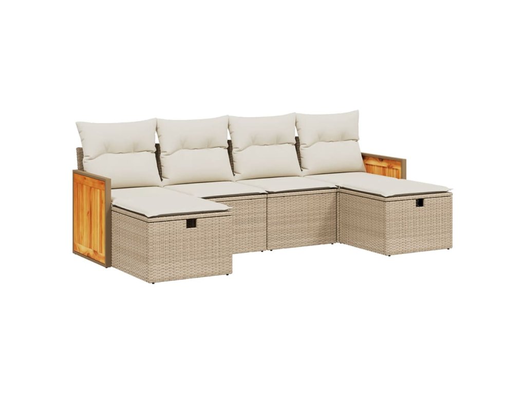 6dílná zahradní sedací souprava s poduškami béžová polyratan 3265776