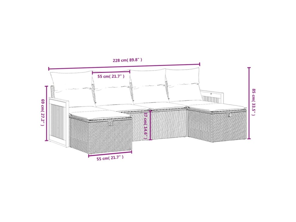 Tato zahradní sedací souprava je dokonalým doplňkem vaší zahrady, terasy nebo dvorku a poskytne vám pohodlné a příjemné místo, kde si můžete povídat s rodinou a přáteli nebo jen tak odpočívat a užívat si pobyt venku.