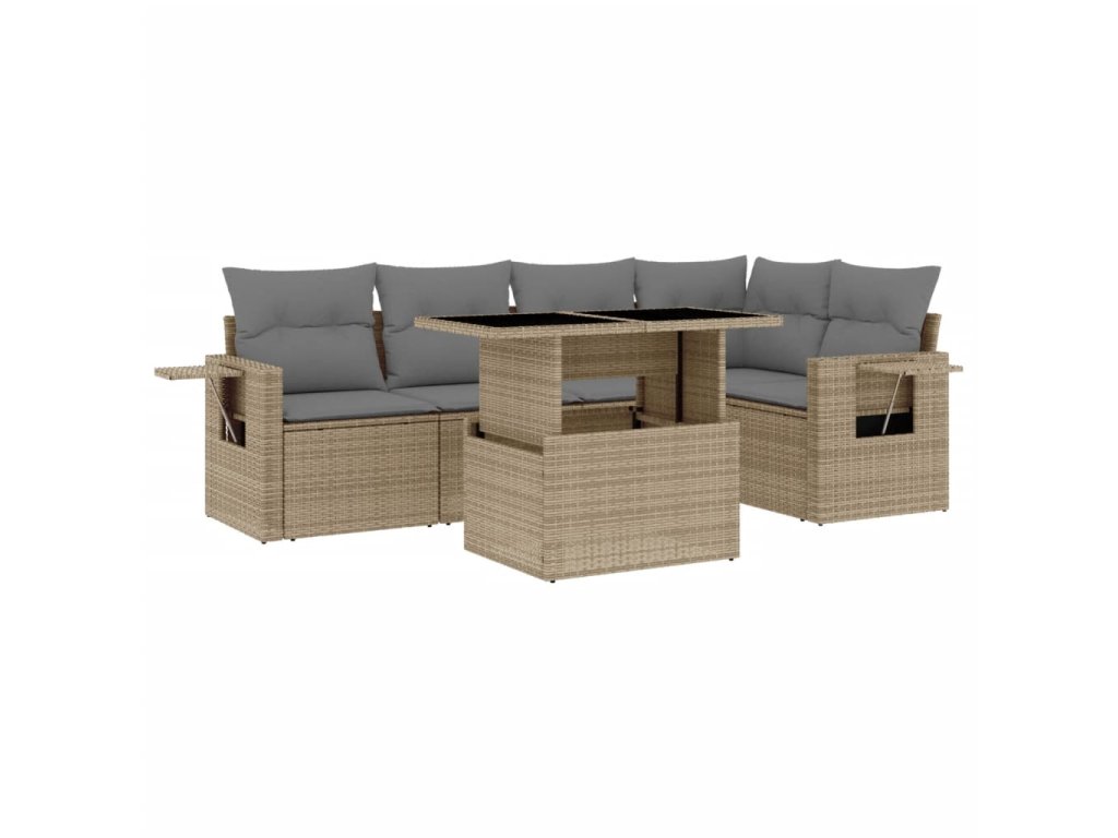 6dílná zahradní sedací souprava s poduškami béžová polyratan 3267889