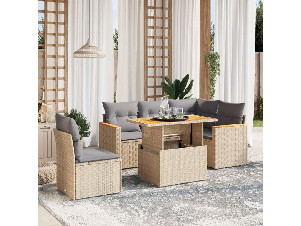 6dílná zahradní sedací souprava s poduškami béžová polyratan 3273082