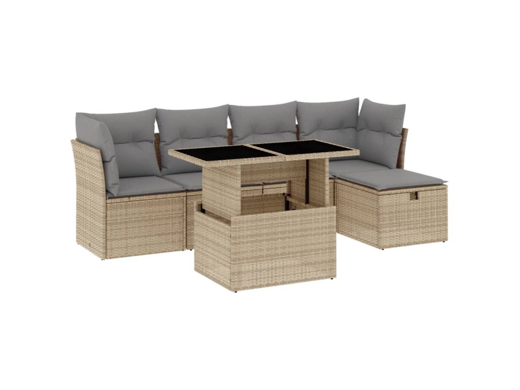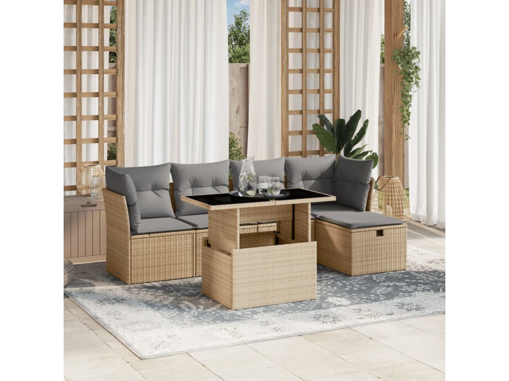 6dílná zahradní sedací souprava s poduškami béžová polyratan 3274639