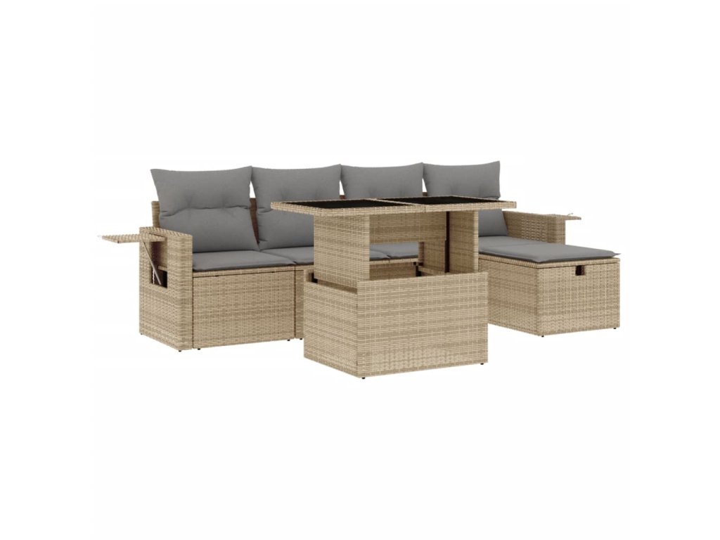 6dílná zahradní sedací souprava s poduškami béžová polyratan 3274969
