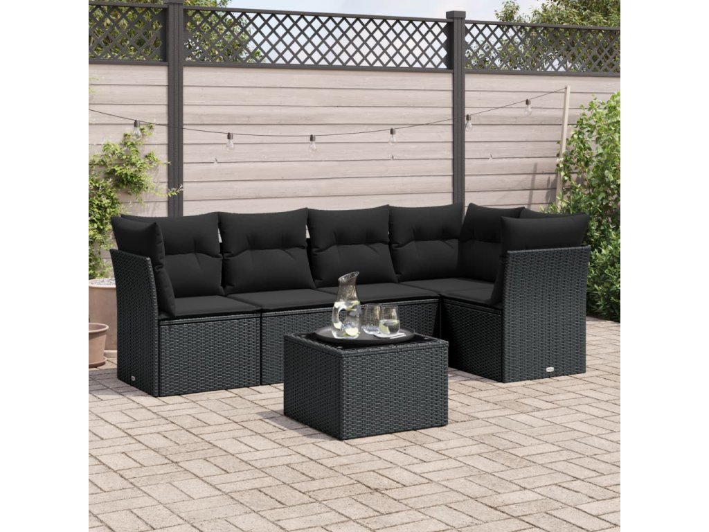6dílná zahradní sedací souprava s poduškami černá polyratan 3217605