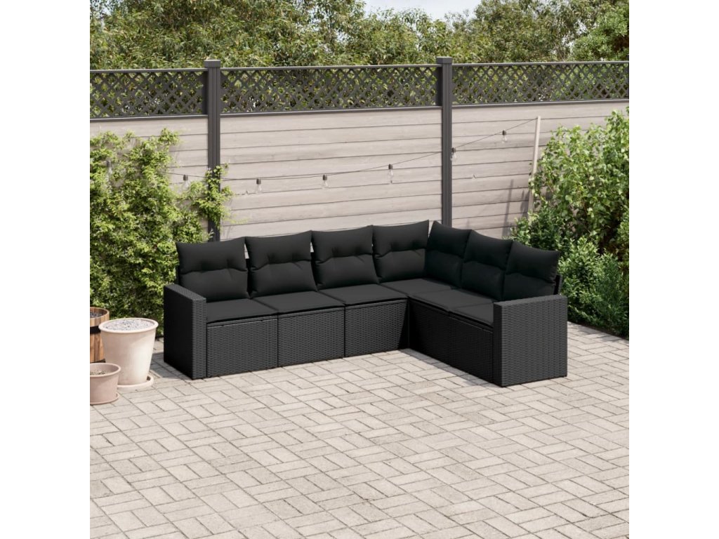 6dílná zahradní sedací souprava s poduškami černá polyratan 3218995