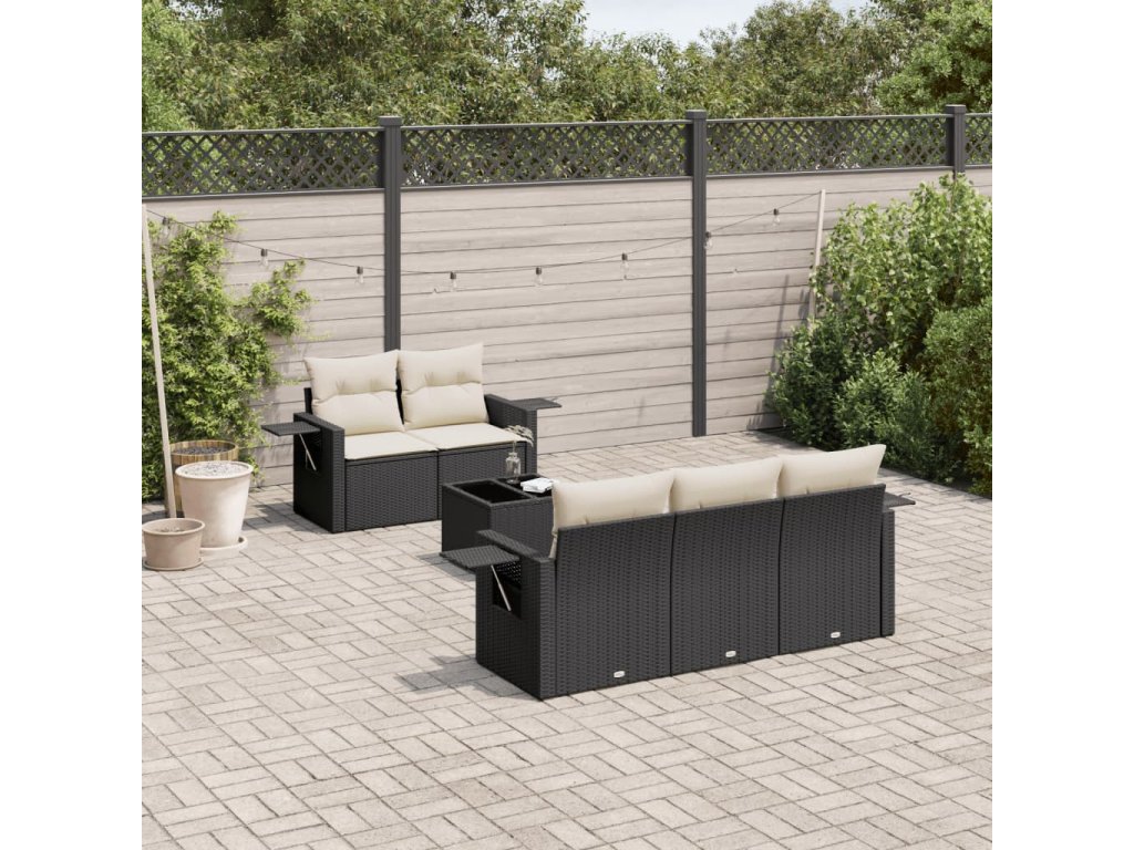 6dílná zahradní sedací souprava s poduškami černá polyratan 3219895