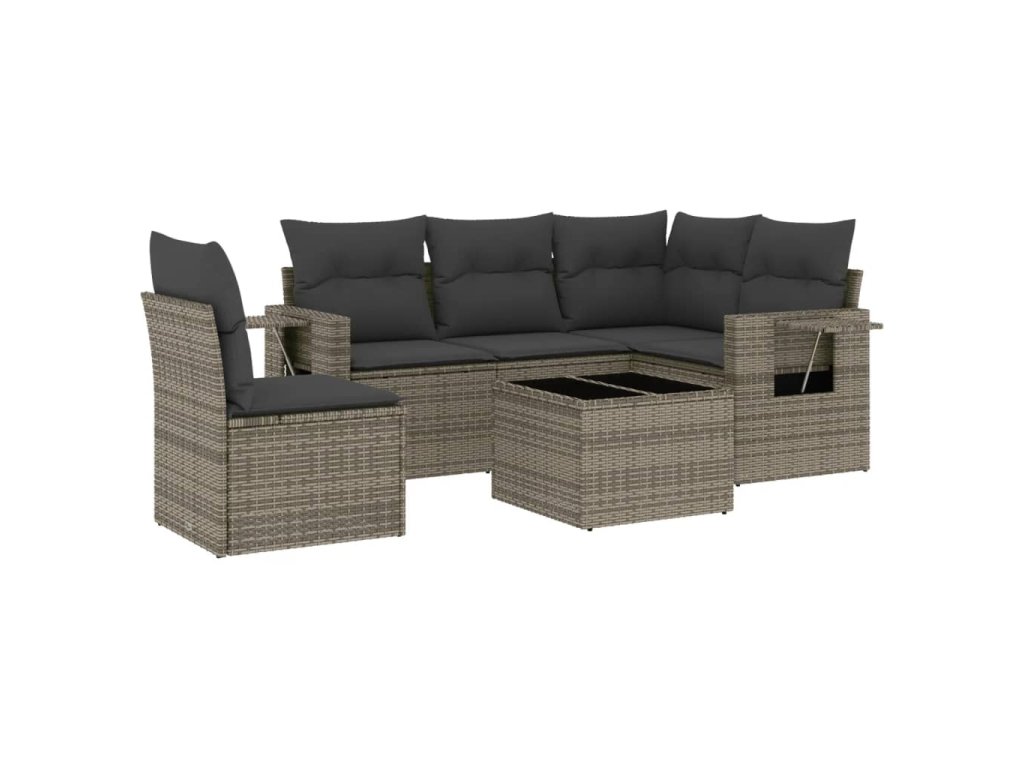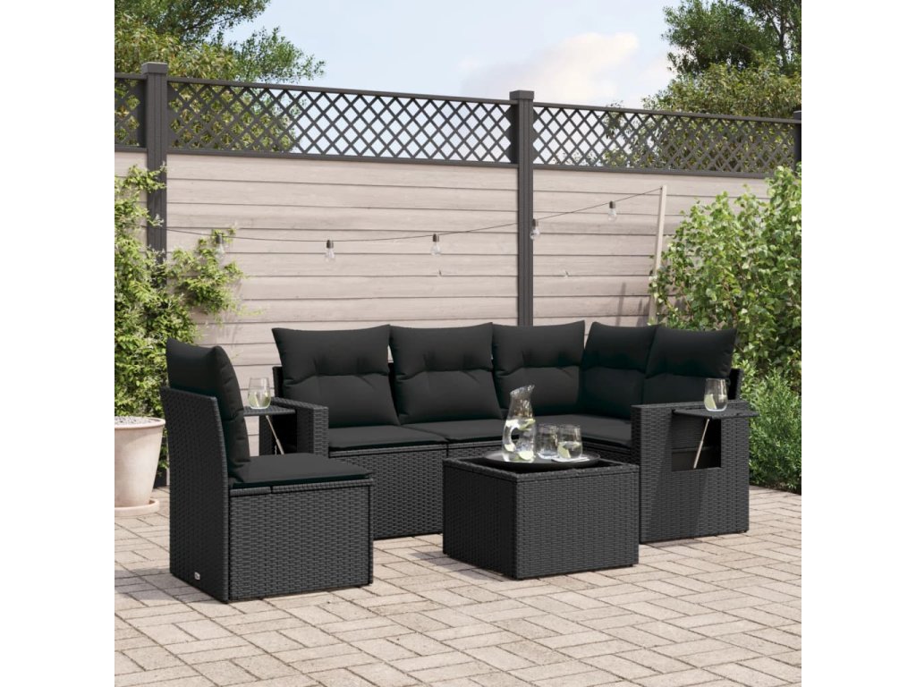 6dílná zahradní sedací souprava s poduškami černá polyratan 3220174