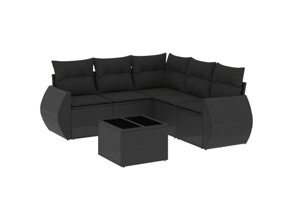 6dílná zahradní sedací souprava s poduškami černá polyratan 3221354