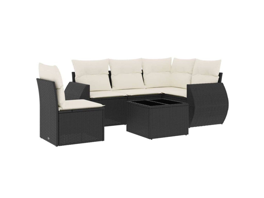 6dílná zahradní sedací souprava s poduškami černá polyratan 3221375